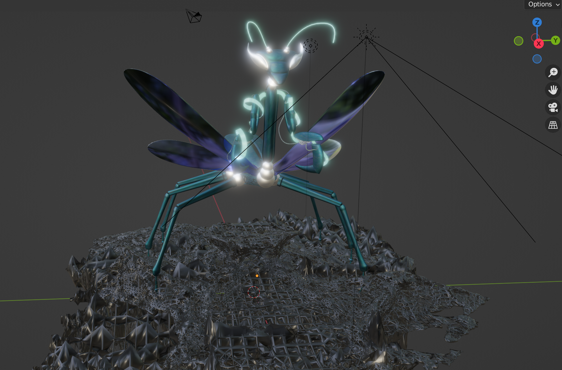 This project involved making a cover image and assets that could be repurposed into a visualizer and t-shirt. The model was first created in blender using metallic materials and used lighting to highlight the shapes. The 3D render was then taken into Photoshop to add the background details.